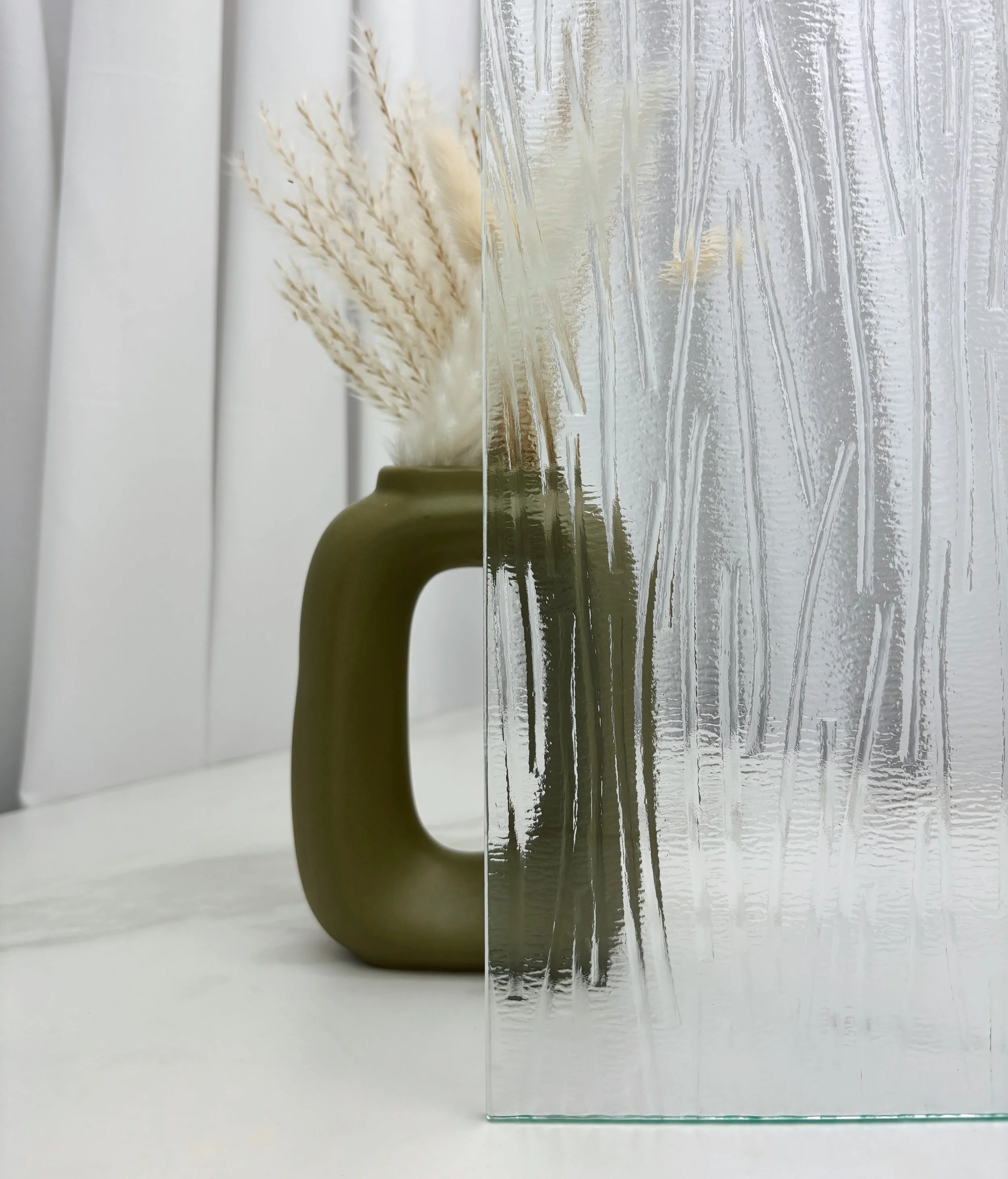 Patterned glass combines functionality with style, offering textured surfaces that diffuse light, obscure surroundings, provide privacy, and add a decorative element to any space. Ideal for use in cabinetry, doors & partitions, furniture, and architectural features.